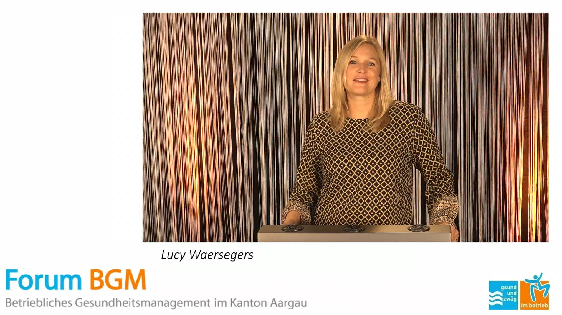 | 17:00 Uhr | Unterstützung Forum BGM und Abschluss Lucy Waersegers, Geschäftsführerin Forum BGM |