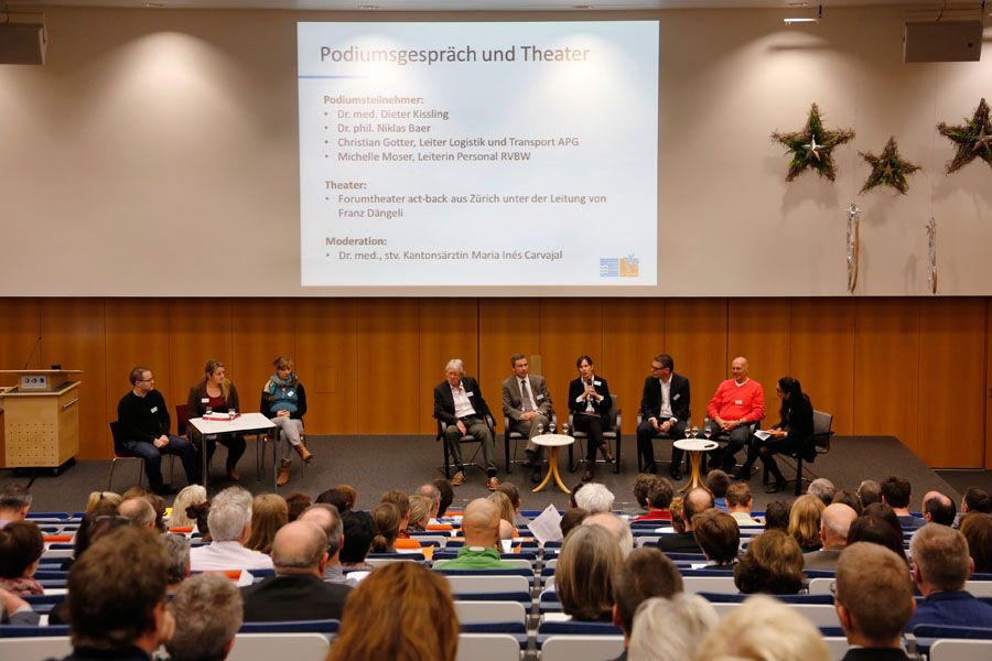 An der 4. Kantonalen BGM-Tagung zum Thema «Chancen und Grenzen der gesundheitsförderlichen Führungsarbeit» erhielten die Teilnehmenden auf wissenschaftlich fundierter Basis praxistaugliche Denkanstösse für die Gestaltung der eigenen Führungsarbeit. Zudem wurde aufgezeigt, worauf im Umgang mit psychisch stark belasteten Mitarbeitenden zu achten ist und wann es empfehlenswert ist, externe Unterstützung beizuziehen. Knapp 250 Personen aus Wirtschaft, Wissenschaft und Politik besuchten den Anlass in Lenzburg.